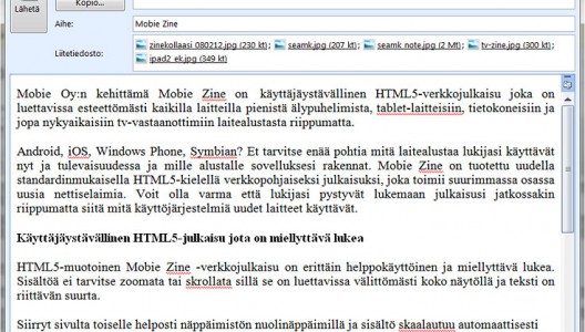 Sisällön lisääminen Mobie Zine-järjestelmään sähköpostitseorder-14 parity-even